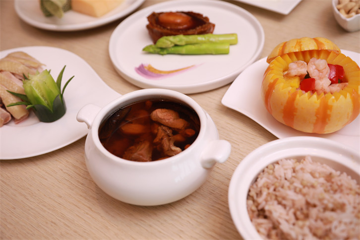月子會所的資深營養(yǎng)師團隊、頂級廚師團隊打造“清-調(diào)-補-養(yǎng)”四階段餐食配方,做到26天一日六餐私人定制(主食、主菜、副菜、點心、飲品、水果),同時還提供各類湯茶,打造科學營養(yǎng)的月子餐,做到寶媽只發(fā)奶不發(fā)福,讓坐月子像一場美食旅行。